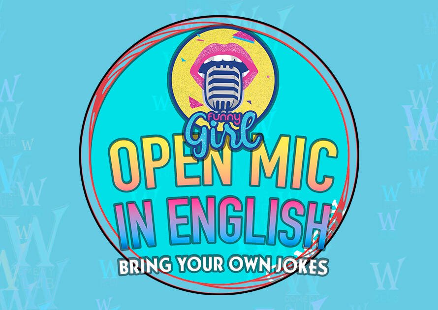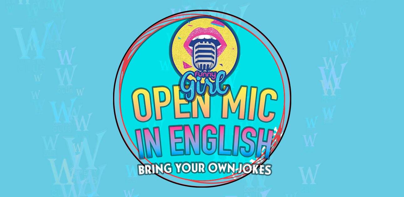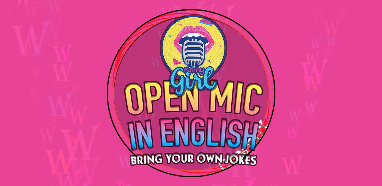 Funny Girl’s Open Mic in English. Bring your own jokes and party vibes