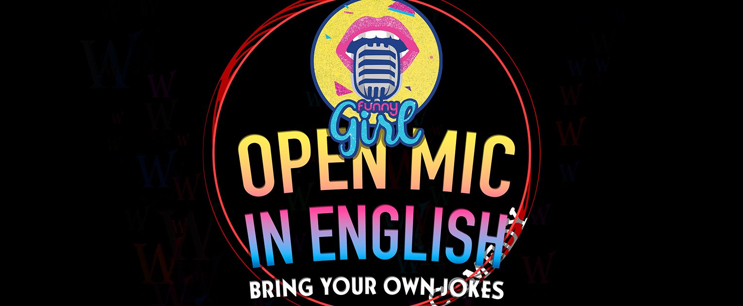 Funny Girl's Open Mic in English. Bring your own jokes and party vibes