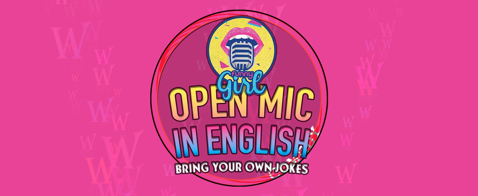 Funny Girl's Open Mic in English. Bring your own jokes and party vibes