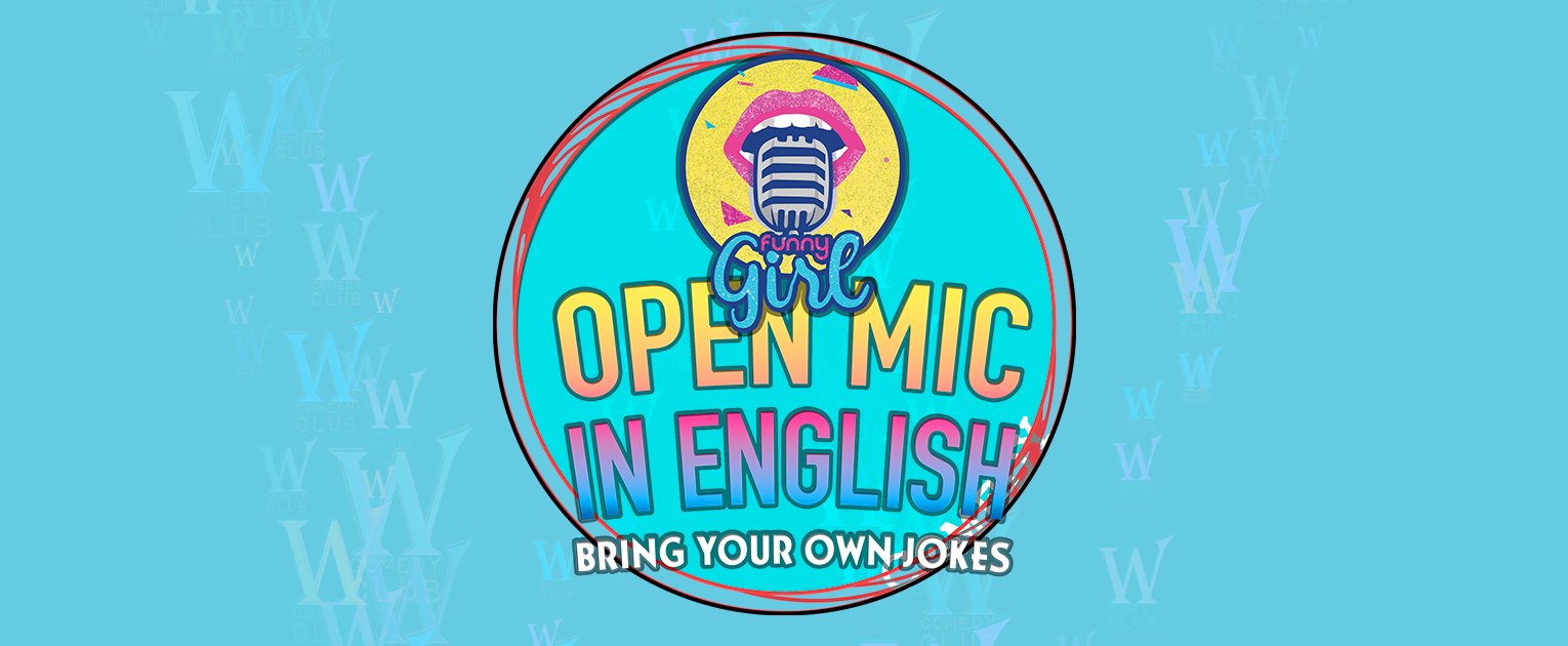 Funny Girl's Open Mic in English. Bring your own jokes and party vibes