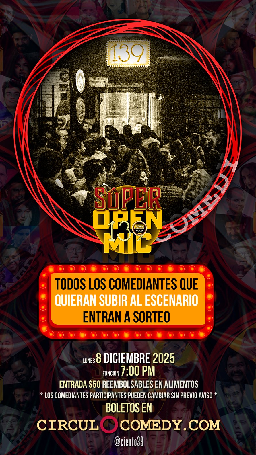 29 DIC. Temporada 2025 Open Mic Stand Up Comedy Invitadxs: ESPECIALES y nuevo talento de la escena de la Ciudad de México.